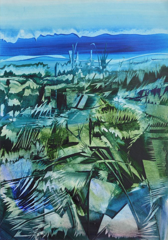 “Landes à Kermagen” Descriptif Peinture acrylique sur papier marouflée sur bois – format 35,5 x 51,5 cm – Certificat d’authenticité – Peinture signée par le peintre – prix : 300€ non encadré Ce tableau fait partie de ma série “Les tons bleu/vert” Collection privée LES PAYSAGES