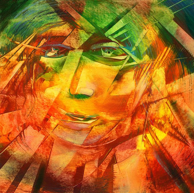 Yannick Le Quilleuc – “Portrait du Dieu Aton” – Peinture Acrylique – J’ai donné figure au dieu Aton qui n’était représenté que sous la forme du cercle solaire et de la figure de ses rayons qui dardent vers les offrandes des humains.