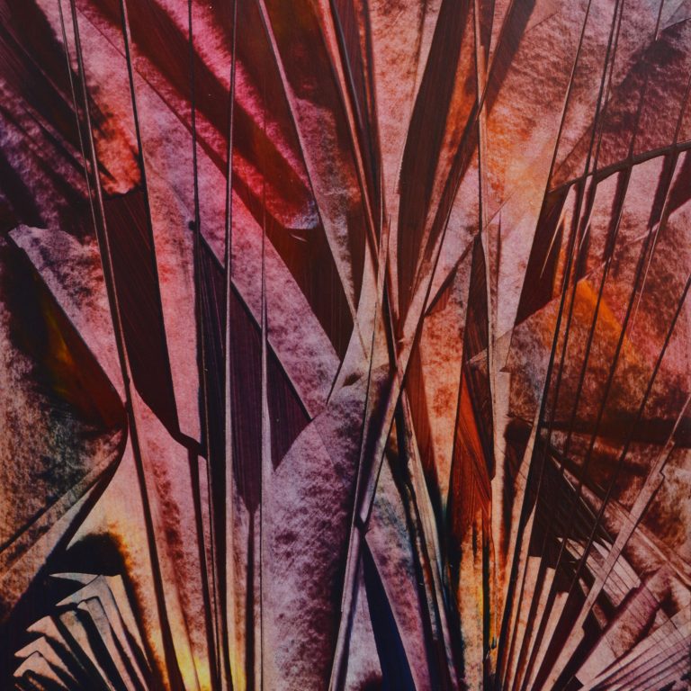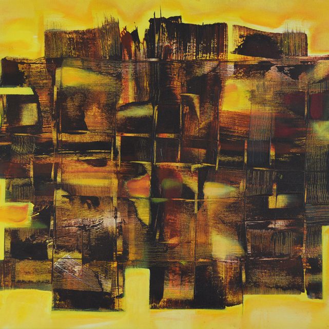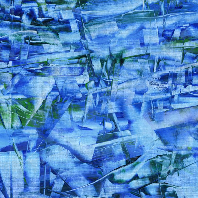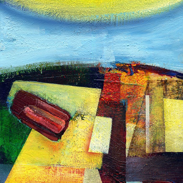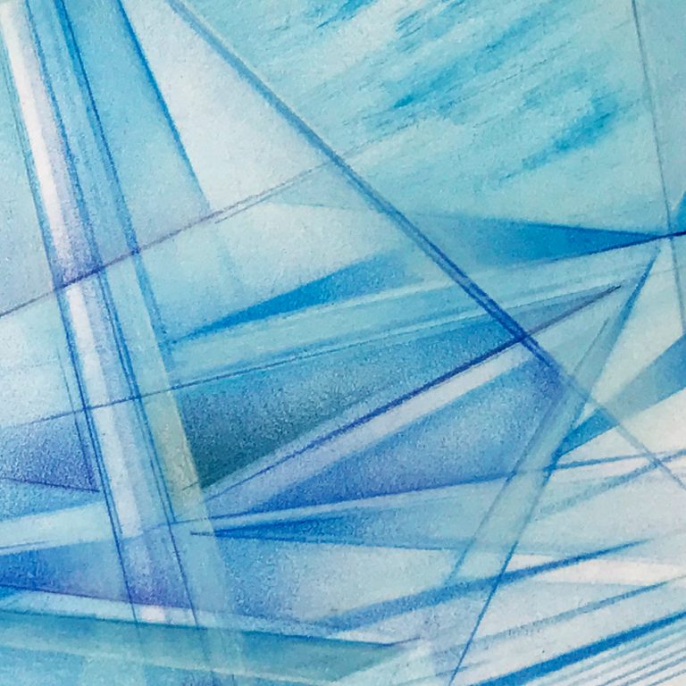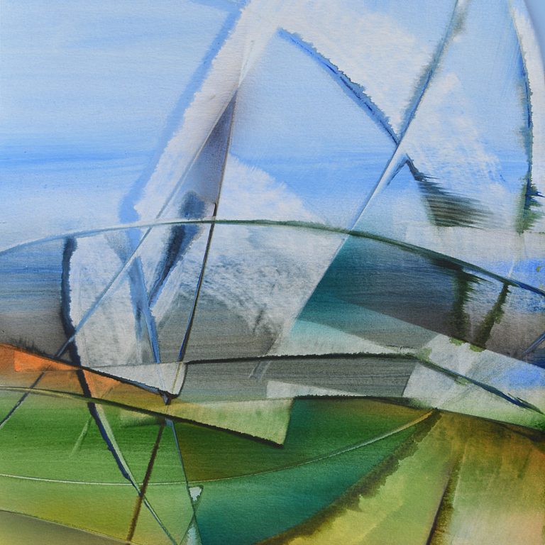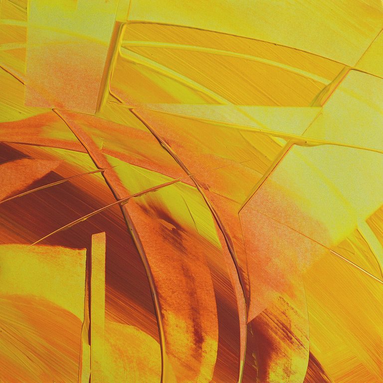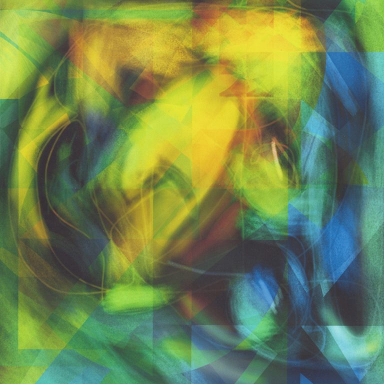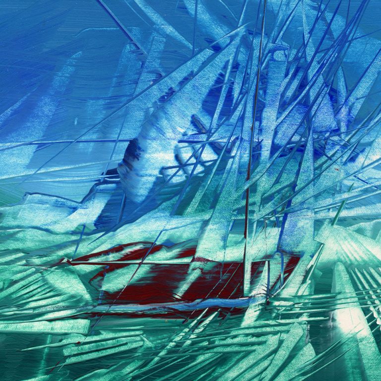 Partant d‘un “jus” léger, j’apporte touche par touche une construction “abstractisante” des volumes pour formaliser les objets virtuels de la composition.