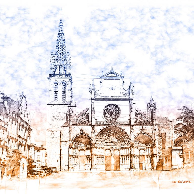 “Depuis mon arrivée à Bazas il y a cinq ans, je dessine des paysages, des architectures, des figures traditionnelles du Bazadais. Je suis un peintre abstrait et de l’imaginaire, mais ma formation initiale me permettait cette approche à la fois réaliste et personnelle.